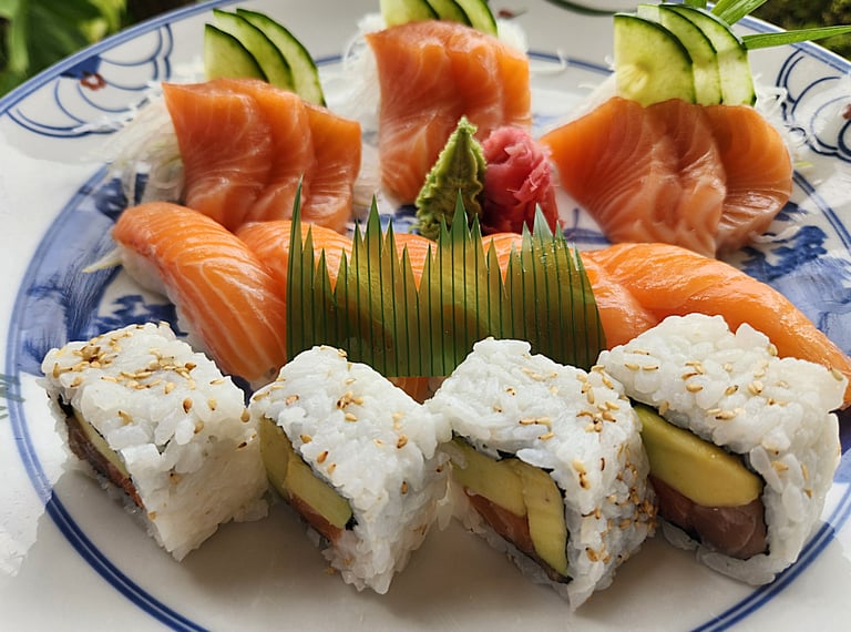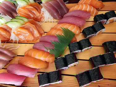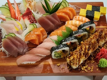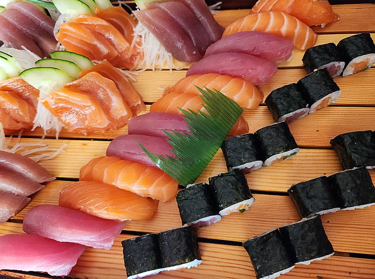 Tuna Salmon, Red Snapper, Prawn, Octopus Sashimi & Sushi
